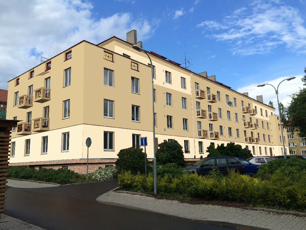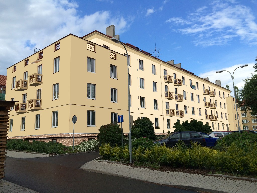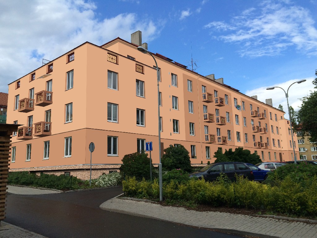 Návrh fasády bytového domu využívá teplé béžové a pískové odstíny, které působí elegantně a nadčasově. Jemné barevné rozdíly zvýrazňují členění objektu, balkony i soklovou část. Fasáda respektuje původní architekturu a přináší moderní vzhled vhodný pro městské prostředí. Výsledkem je harmonická a vizuálně čistá rekonstrukce.